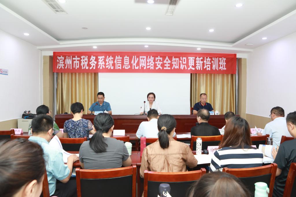 云天收夏色,木叶动秋声。9月18日上午,滨州市税务系统信息化网络安全知识更新培训班开班仪式在泰安校区举行,beats365经理王靖磊、滨州市税务局信息中心主任陈芳出席开班仪式并讲话,来自滨州市税务系统的40名信息化建设骨干参加了开班仪式,开班仪式由经理助理孙运表主持。