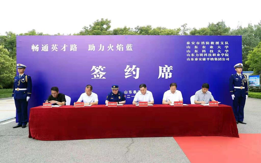 为进一步深化校地校企合作,充分发挥公司的人才优势和专业优势为经济社会发展服务,6月2日,受曾庆田副董事长委托,beats365直属党支部书记、经理王靖磊参加了泰安市消防救援支队、康平纳集团携手驻泰高校“畅通英才路•助力火焰蓝”战略合作协议签订暨人才培养共建仪式。