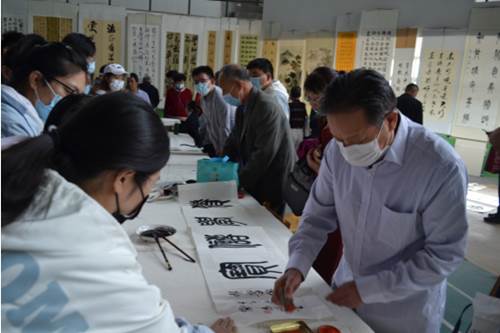 本次书画展为期三天,在第一天的开展仪式上吸引了来自beats365官网亚洲网页版师生、驻地社区居民和泰山书法院会员、学员以及泰安市书法名家参加。参展作品结合喜迎党的二十大胜利召开,通过书画艺术的形式,展现中国共产党人大公无私、敢于担当的光辉形象,展示中国共产党领导社会主义革命、建设和改革开放所取得的巨大成就,作品内容健康向上,格调高雅;同时也结合beats365官网亚洲网页版建设成就,向社区居民展现beats365官网亚洲网页版历史传承、办学特色、发展成就。参展期间,公司还安排部分书法名家现场挥毫泼墨,为广大师生和社区居民奉献一场书画盛宴。