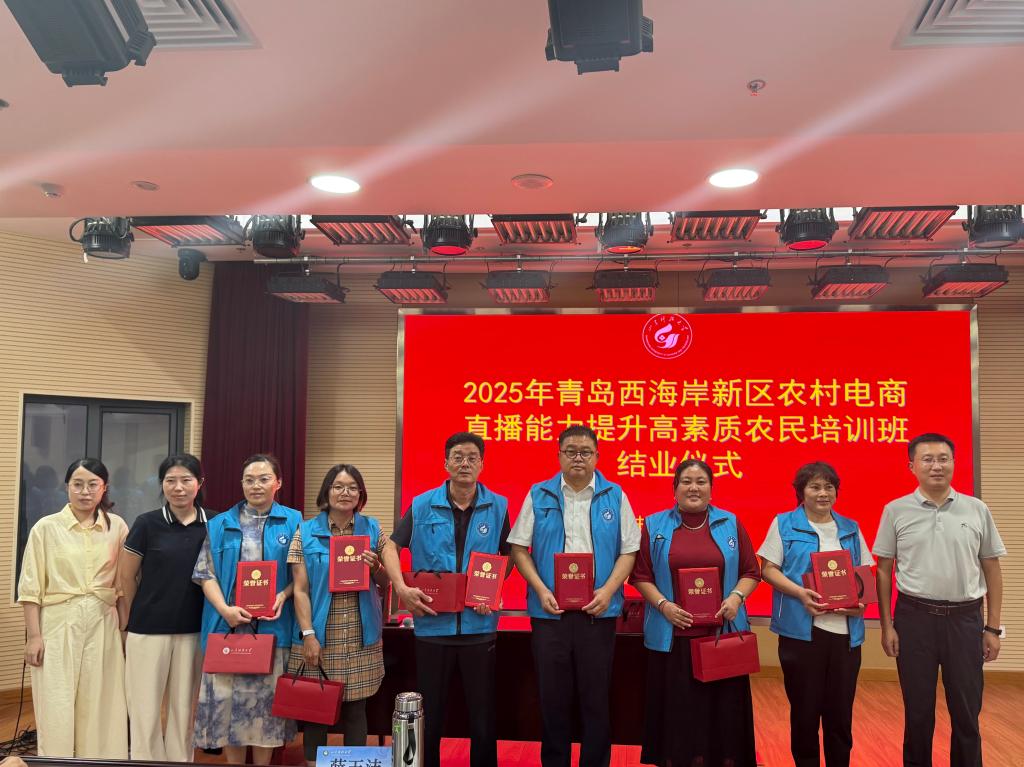 近日,由公司与青岛西海岸新区农业农村局联合举办的2025年青岛西海岸新区农村电商直播能力提升高素质农民培训班——暨青岛市高素质农民培育与学历提升衔接试点班顺利结业。此次培训班线下课程为期8天,吸引了来自西海岸新区各镇街的种植大户、农业合作社成员等40名学员参加,旨在提升农民电商直播专业水平,助力农产品拓宽销售渠道,推动乡村振兴。