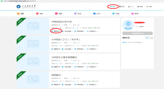 (2)集体选开课完成后,进入“首页”,即可看到本学期所有课程,点击课程名下的“课程学习”,即可在线学习。