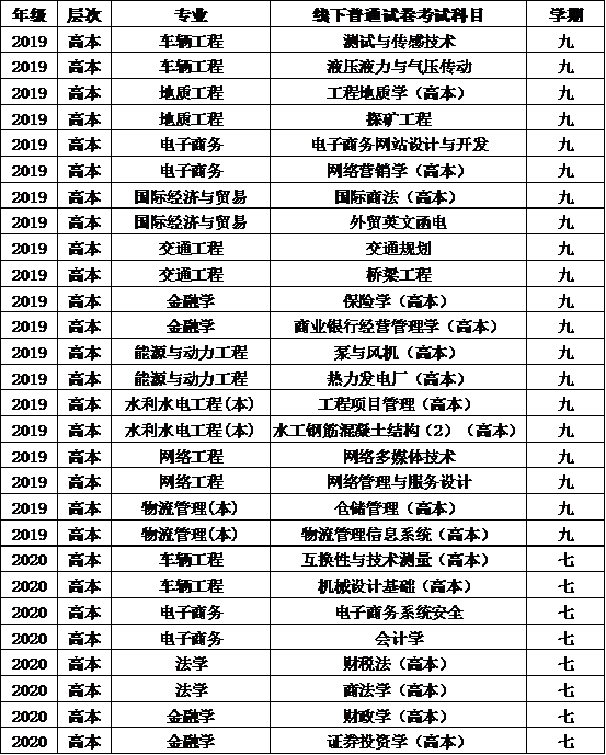 19级、20级高本的极个别已撤销专业采用线下普通试卷考试,见附件一;